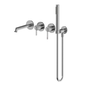 EMPORIA ORI 4-otworowa przeznaczona jest do montażu ściennego podtynkowego, co pozwala ukryć część instalacyjną w ścianie i zachować minimalistyczny wygląd strefy kąpielowej. Na zewnątrz pozostają tylko eleganckie elementy sterujące i wylewka, dzięki czemu całość wygląda lekko i nowocześnie.