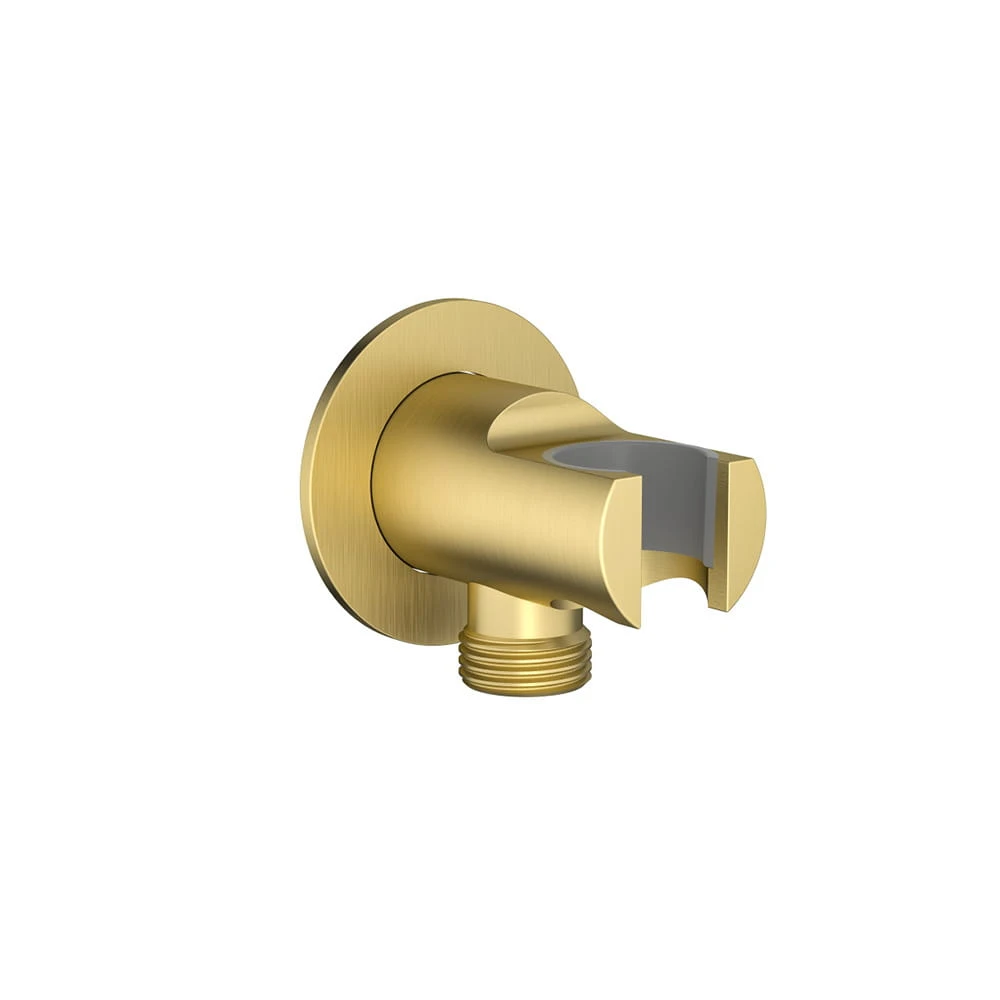 Fly Przyłącze Kątowe okrągłe z uchwytem na słuchawkę prysznicową złoty szczotkownay