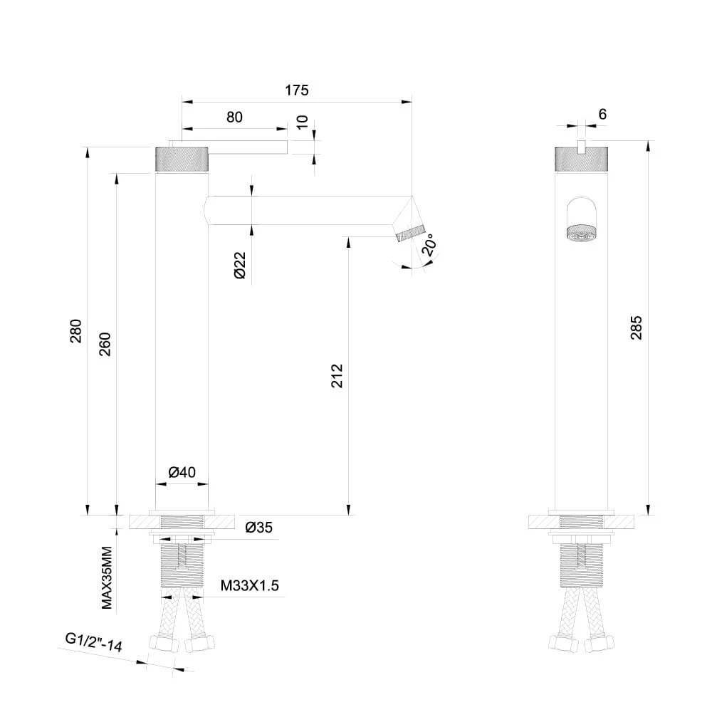- Wysokość 285 mm