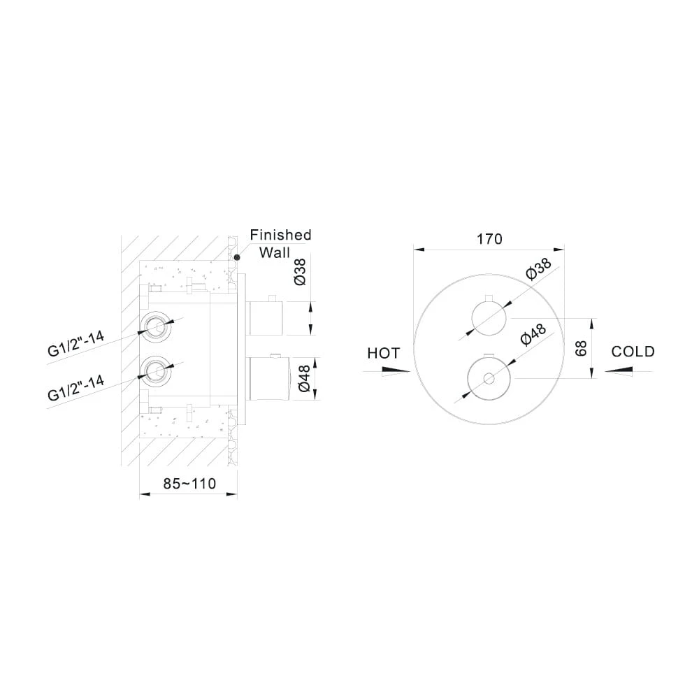 Bateria przeznaczona jest do montażu podtynkowego, dzięki czemu instalacja pozostaje ukryta w ścianie, a strefa kąpielowa wygląda nowocześnie i minimalistycznie. W zestawie znajduje się podtynkowy box 3-wyjściowy, który umożliwia podłączenie: