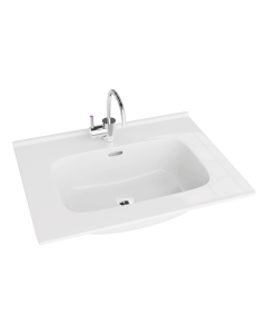 Umywalka ma przygotowany otwór na baterię oraz przelew, co ułatwia bezpieczne użytkowanie na co dzień.